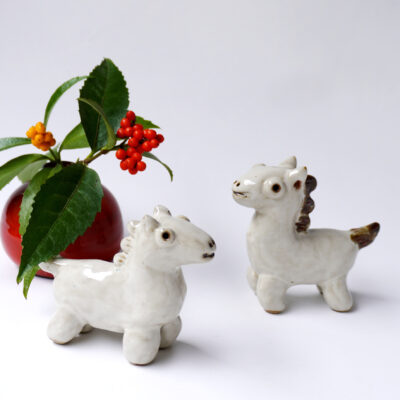 普段使いの食器の他に、ヨーロッパ生まれの顔料を使った赤い器、ユニークなモチーフの箸置きや置物、ボタンやアクセサリーなど、多様な焼き物を作っています。