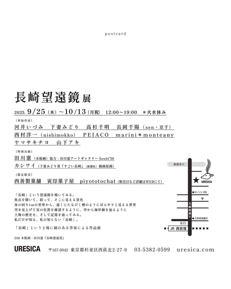 東京・西荻窪 ウレシカで開催される「長崎望遠鏡 展」に京千・長岡千陽が参加します。
