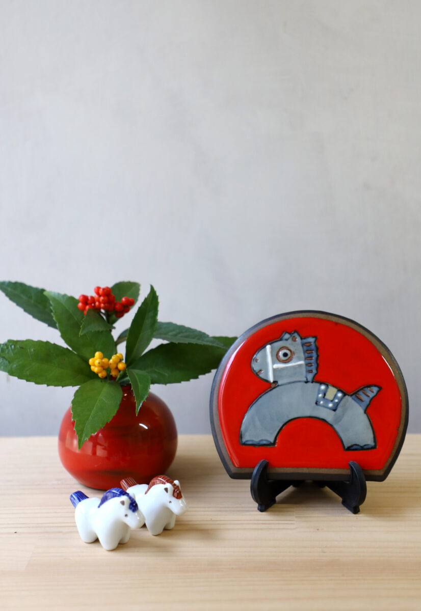 新年のご挨拶 あけましておめでとうございます旧年中は格別のご愛顧を賜り、厚く御礼申し上げます。本年も変わらぬお引き立てのほど、よろしくお願い申し上げます。 2026年の干支・午(うま)の商品のご案内 ・干支 午(うま) 青/赤 ・うま3種 (シマウマ・ポニー・ロバ) ・動物 箸置き うま(ビスク) ・陶板飾り 午(うま・中)